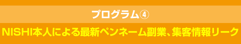 | 場所 | コンテンツは会員サイト内 価格(販売ページに準ずる) ペンネームビジネスプログラム |